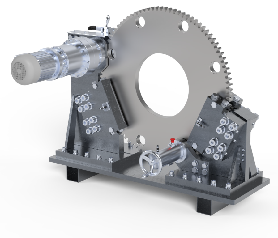 TURN: Umożliwia obracanie wału głównego w obu kierunkach bez uruchamiania silnika głównego. Uruchamiany elektrycznie, z pokrętłem bezpieczeństwa do użytku awaryjnego. Uwzględnia różnicę między statycznym i dynamicznym momentem obrotowym. Koło zębate dostarczane przez STÜWE®.